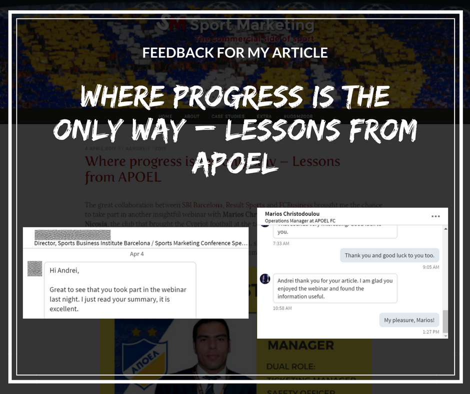 So that is the big question. What’s next for me? Firstly, I am intending to establish my online presence even more. Some of my profile pictures (as on LinkedIn) need an update with more recent ones. I am also planning on continuing to write sport-related articles on my blog: sportmktg.net, working towards the goal of becoming a digital influencer in the sports marketing industry. I tried to reflect more on my experience during #UOSM2008 in the video below.